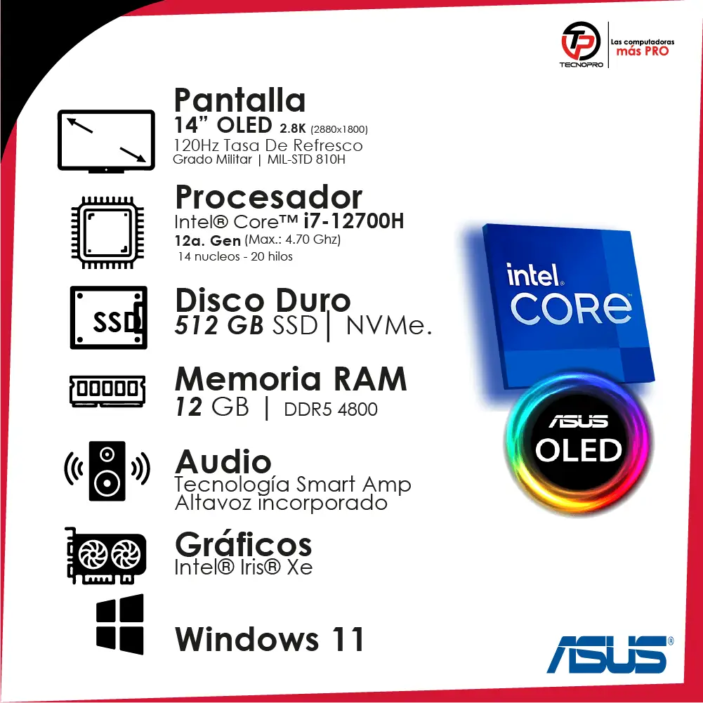 Laptop Asus Intel Core I7 – 12 Gb Ram – 512 Gb Ssd + Oled