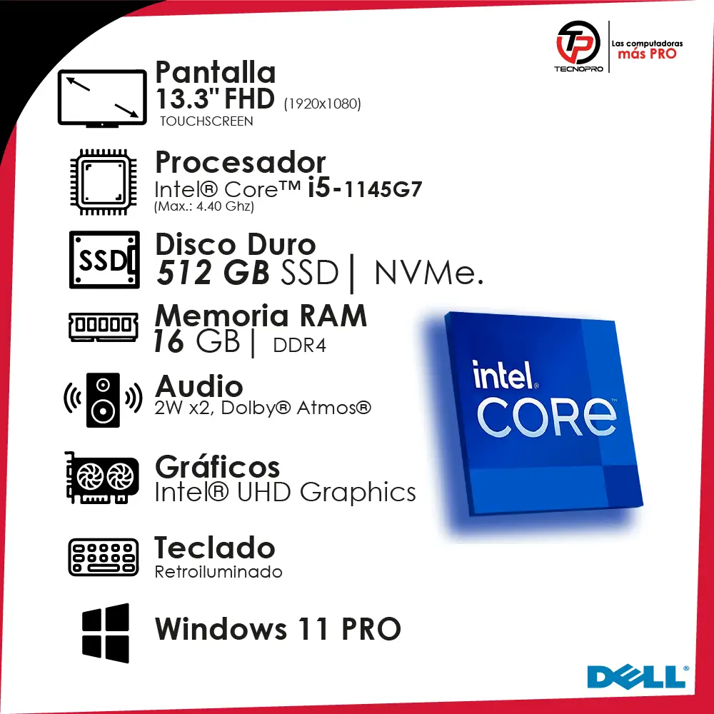 – Procesador: Intel® Core™ i5-1145G7 (1.10 GHz; Frecuencia turbo máxima 4.40 GHz)