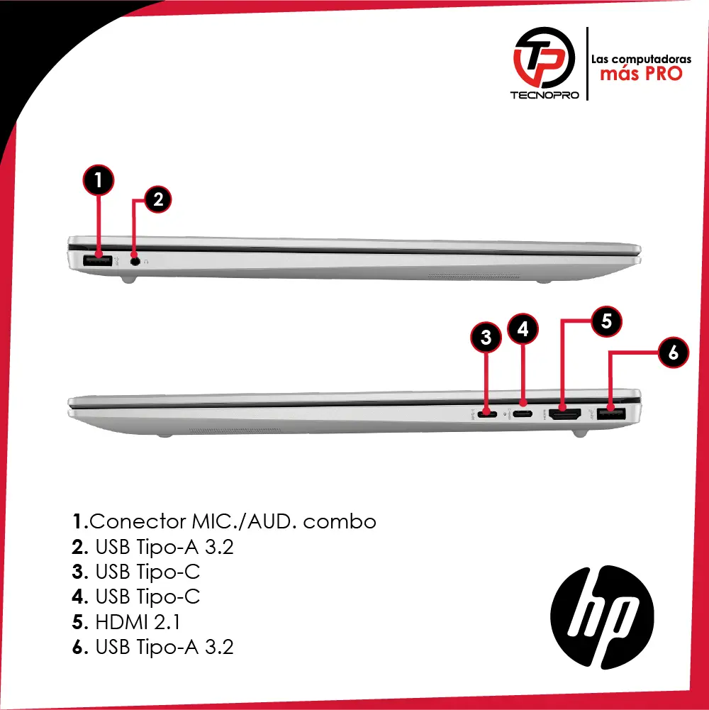 2x Puertos USB 3.2 Gen 2.0 Type-C®; velocidad de señal de 10 Gbps (alimentación USB, DisplayPort™ 1.4, HP Sleep and Charge)