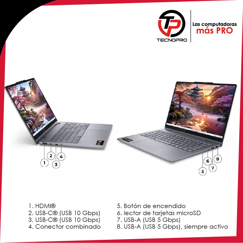 – Cámara: FHD 1080p + IR, con obturador de privacidad